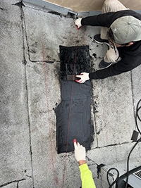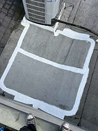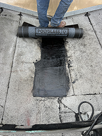 ponding area leveling and torch, clean down spot and using mestic (264 Elastomeric Roof Patch)